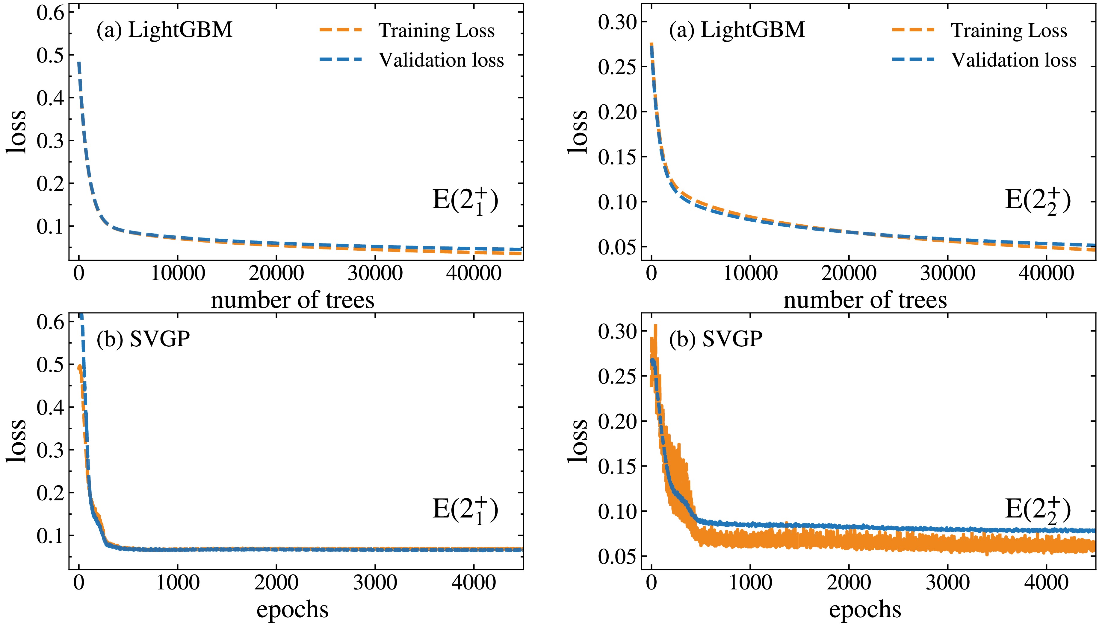 The low-lying excitation energies of the\begin{document}$2_1^+, 4_1^+,2_2^+, 0_2^+,3_1^-, 0_3^+$\end{document} states in even-even nuclei are studied using two modern machine learning algorithms: the Light Gradient Boosting Machine (LightGBM) and Sparse Variational Gaussian Process (SVGP). The obtained results demonstrate that both LightGBM and SVGP perform well on the training and validation datasets when informed by a physics-based feature space. A detailed comparison of the results obtained for \begin{document}$2_1^+$\end{document} and \begin{document}$2_2^+$\end{document} states using the Hartree-Fock-Bogoliubov theory extended by the generator coordinate method and mapped onto a five-dimensional collective quadrupole Hamiltonian shows that both ML algorithms outperform this model in terms of accuracy. The extrapolation capabilities of these algorithms were further validated using newly measured 12 data points of \begin{document}$2_1^+$\end{document} and \begin{document}$2_2^+$\end{document} states, which were not included in the training set. In addition, the partial dependence plot method and the Shapley additive explanations method are used as interpretability tools to analyze the relationship between the input features and model predictions. These tools provide in-depth insights into how the input features influence the prediction of low-lying excitation energies and help identify the most important features that drive the prediction, which are valuable for understanding the low-lying excitation energies.