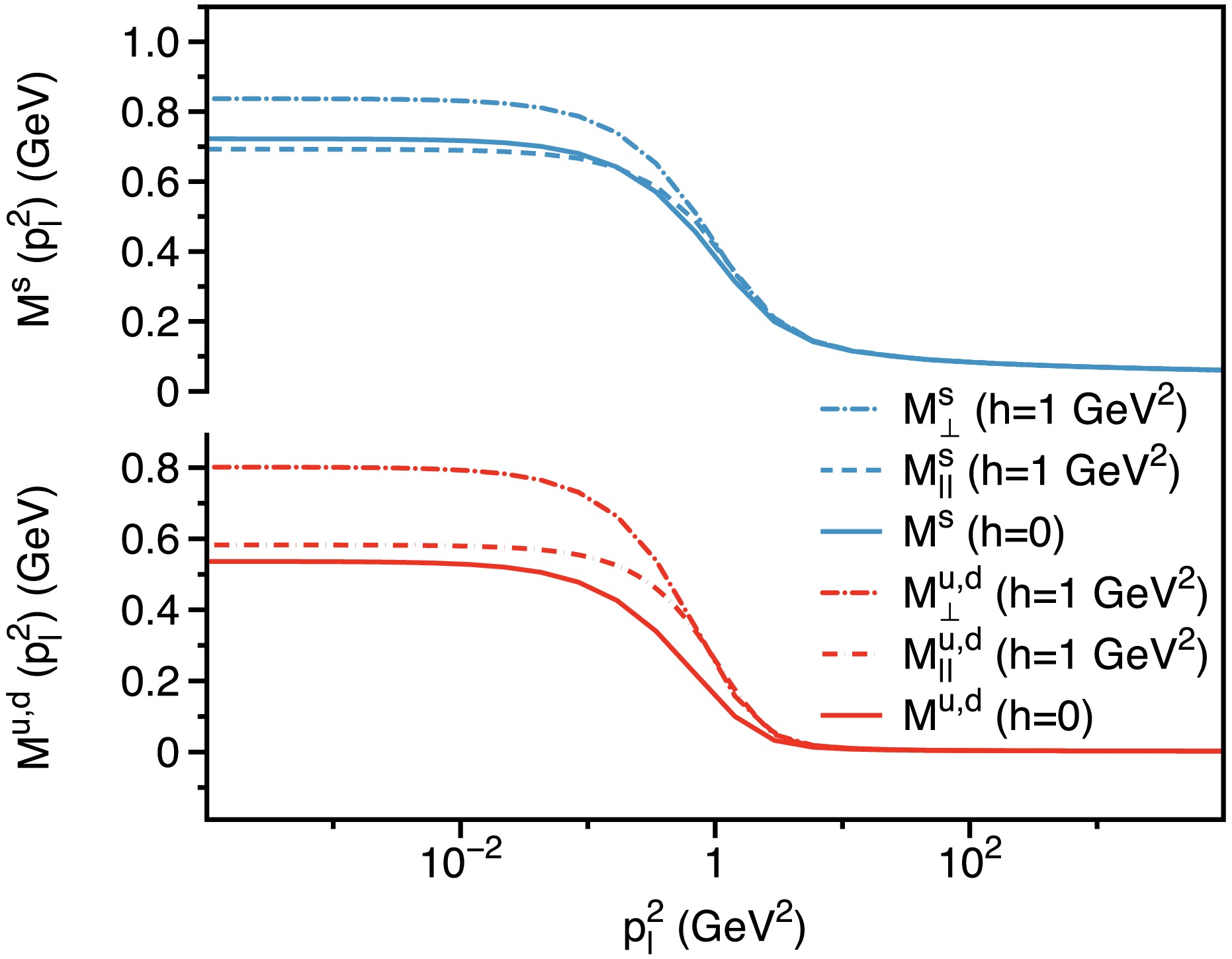 We investigated the impact of a constant external magnetic field on the dressed propagators of up-, down-, and strange quarks. In the weak field limit, we derive a general momentum-space representation for the propagator and numerically solve the corresponding gap equation. Our analysis reveals that the vector term of the propagator can be decomposed into components parallel and perpendicular to the magnetic field, resulting in anisotropic effective masses, with the transverse mass consistently exceeding the longitudinal mass. This mass disparity exhibits a power law dependence on the magnetic field strength and is less pronounced for the strange quark compared to up and down quarks. Additionally, the magnetic field induces axial-vector and tensor terms, highlighting the Zeeman effect, resulting from quark interactions with the magnetic field. These findings have important implications for (inverse) magnetic catalysis and phenomena such as vector meson and pion condensations.