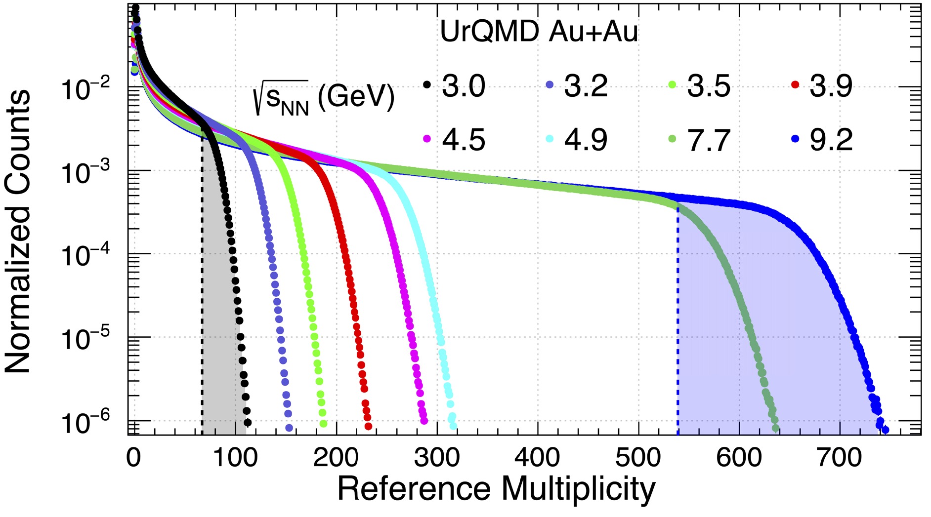 High moments of conserved quantities, such as net-baryon, net-electric charge, and net-strangeness, in heavy-ion collisions are sensitive to fluctuations caused by the quantum chromodynamics critical point (CP). The event-by-event analysis of high moments of the conserved charges has been widely used in experiments to search for the CP, particularly in the RHIC-STAR experiment. To establish a dynamical non-critical baseline, particularly in the high baryon density region, we performed a systematic analysis of the proton multiplicity distributions from Au+Au collisions at