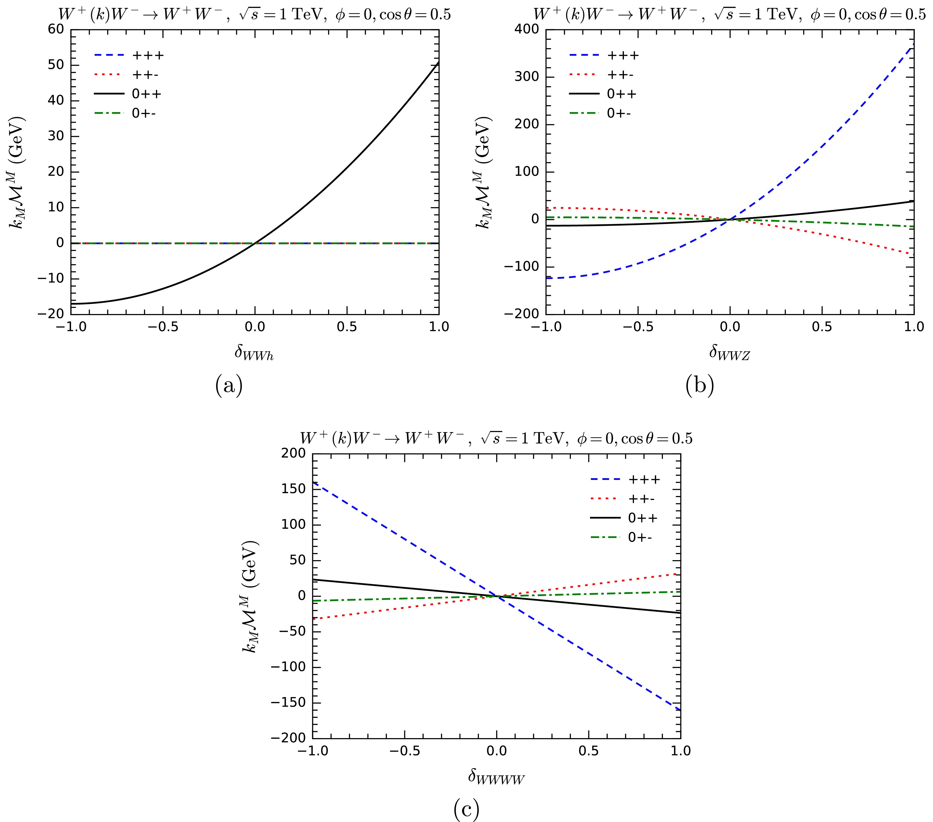 Electroweak (EW) amplitudes in the gauge-Goldstone five-component formalism have a distinctive property: gauge symmetry is imprinted in the amplitudes, manifested as the massive Ward identity (MWI)\begin{document}$ k^M{\cal{M}}_M=0 $\end{document} . In this study, we used the HELAS package to numerically study gauge symmetry in EW amplitudes. First, we directly tested gauge symmetry by examining the MWI of amplitudes. Second, we modified the couplings within a vertex and among vertices to check if and how the MWI changes. Third, we tested gauge symmetry by considering the couplings modified by operators from the standard model effective field theory (SMEFT). Similar to the standard model, there are relations between different couplings that are protected by gauge symmetry. We observed that, if we modify the couplings to deviate from the relations, the MWI is violated. In contrast, the MWI is restored when the relations between couplings reduce to those in the SMEFT.