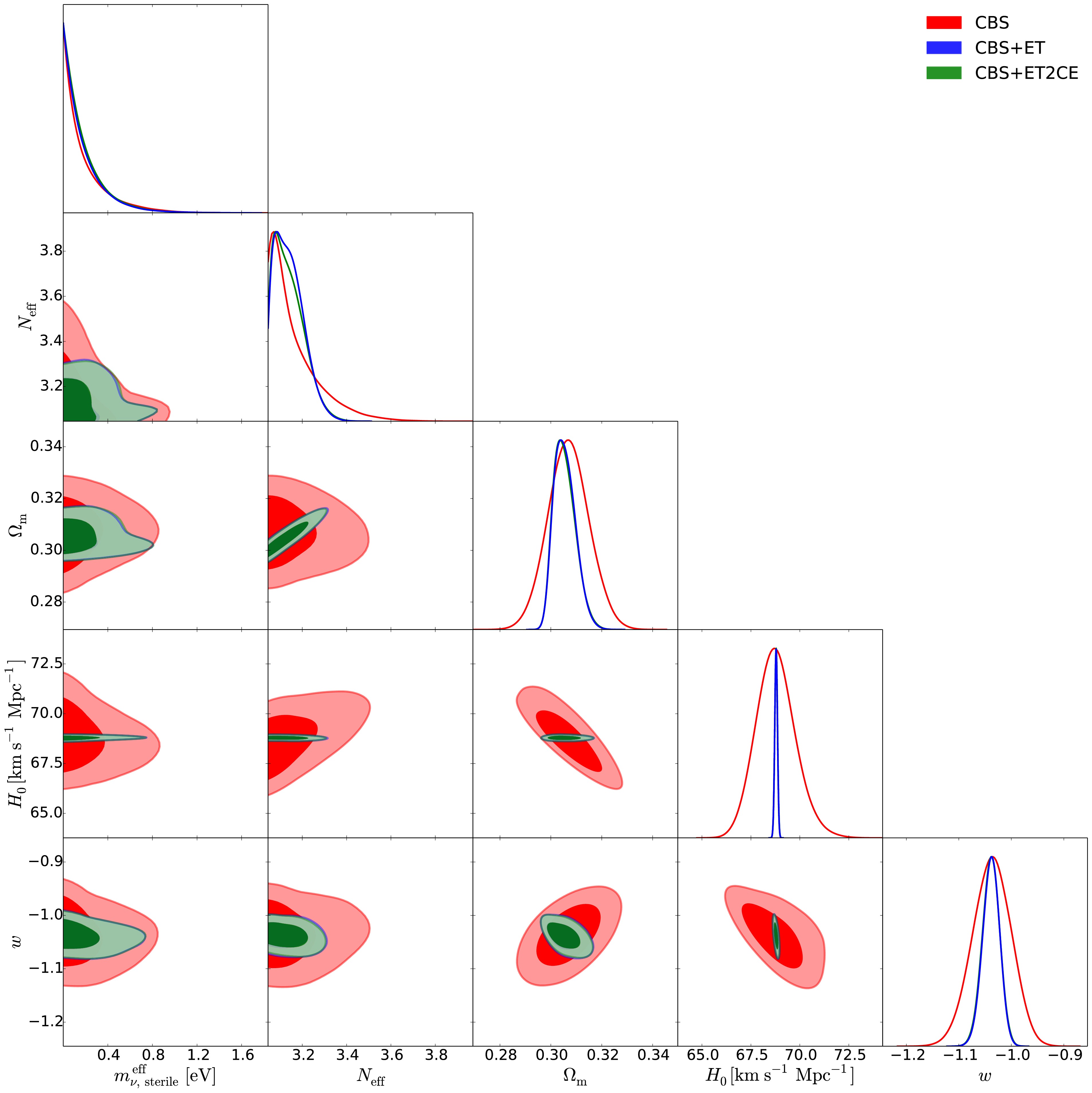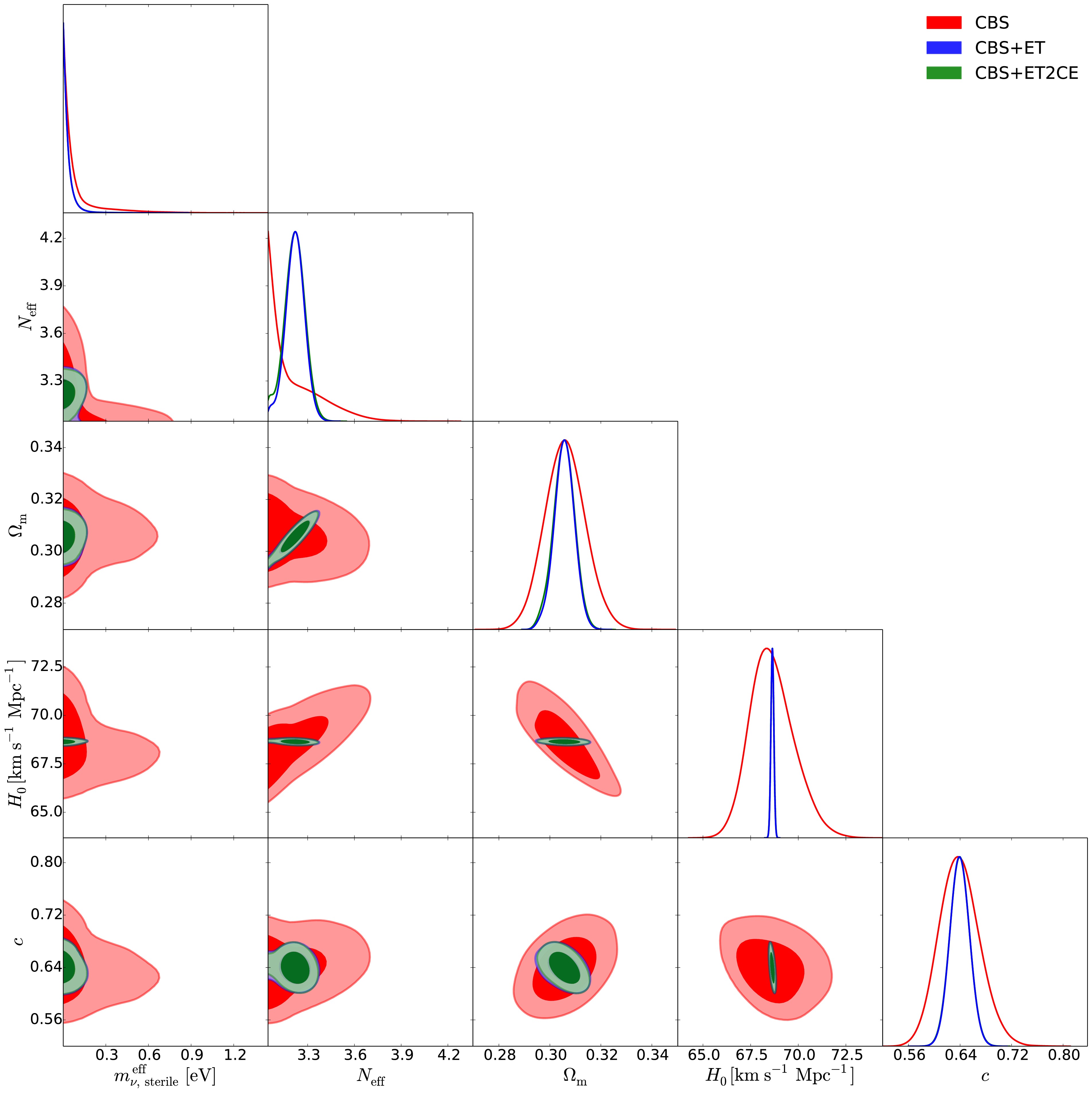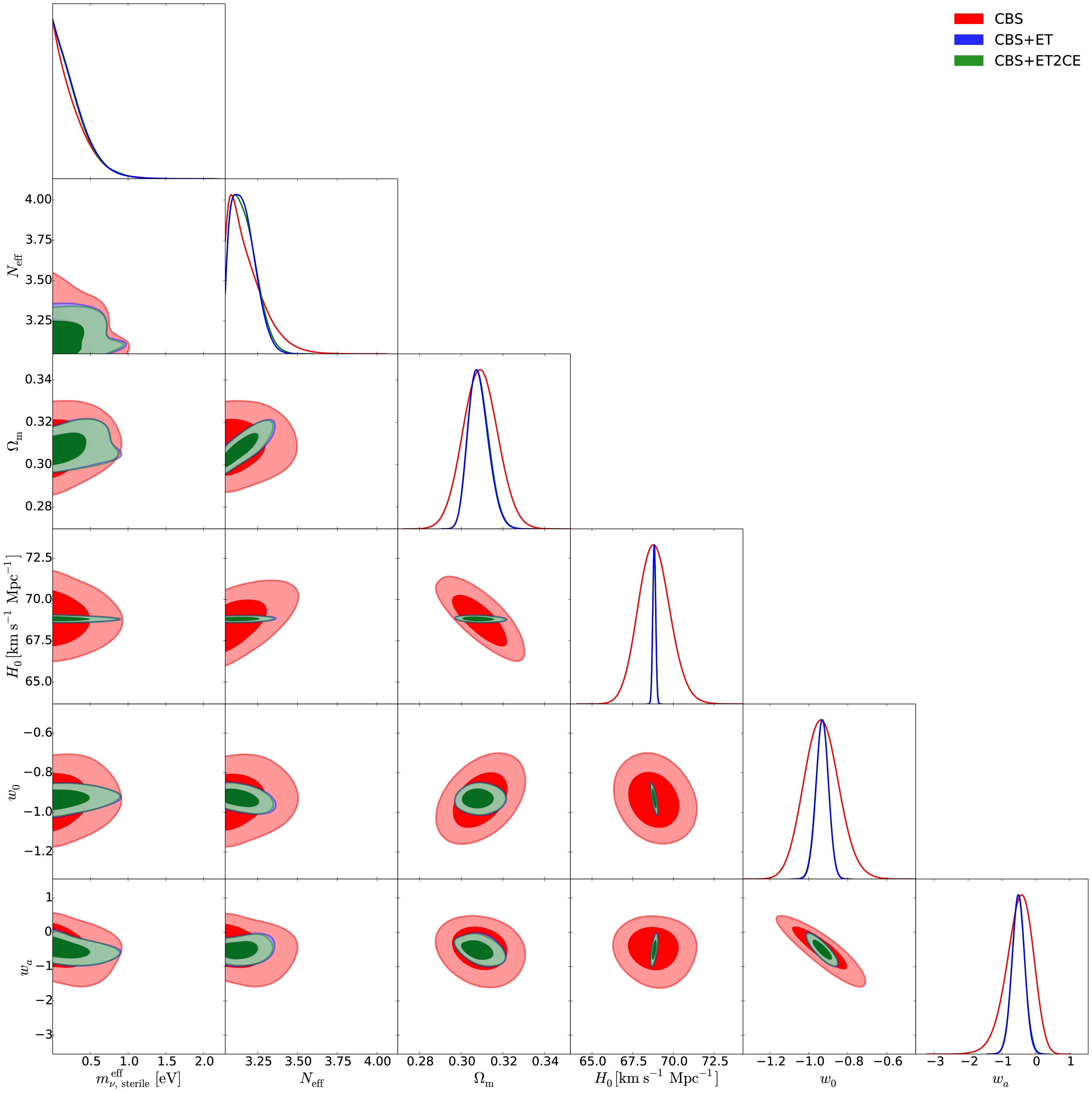In the era of third-generation (3G) gravitational-wave (GW) detectors, GW standard siren observations from binary neutron star mergers provide a powerful tool for probing the expansion history of the universe. Because sterile neutrinos can influence cosmic evolution by modifying the radiation content and suppressing structure formation, GW standard sirens offer promising prospects for constraining sterile neutrino properties within a cosmological framework. Building on this, we investigate the prospects of detecting sterile neutrinos in dynamical dark energy (DE) models using joint observations from 3G GW detectors and a future short gamma-ray burst detector, such as a THESEUS-like telescope. We consider the wCDM, holographic DE (HDE), and Chevallier–Polarski–Linder (CPL) models. Our results show that the properties of DE can influence the constraints on sterile neutrino parameters. Moreover, the inclusion of GW data significantly improves constraints on both sterile neutrino parameters and other cosmological parameters across all three models compared to the current limits derived from CMB+BAO+SN (CBS) observations. When GW data are included in the CBS dataset, a preference for\begin{document}$ \Delta N_{\rm{eff}} > 0 $\end{document} emerges at approximately the \begin{document}$ 1\sigma $\end{document} level in the wCDM and CPL models, while it reaches approximately \begin{document}$ 3\sigma $\end{document} in the HDE model. Moreover, the upper limits on \begin{document}$ m_{\nu,{\rm{sterile}}}^{\rm{eff}} $\end{document} are reduced by approximately 13%, 75%, and 3% in the wCDM, HDE, and CPL models, respectively.