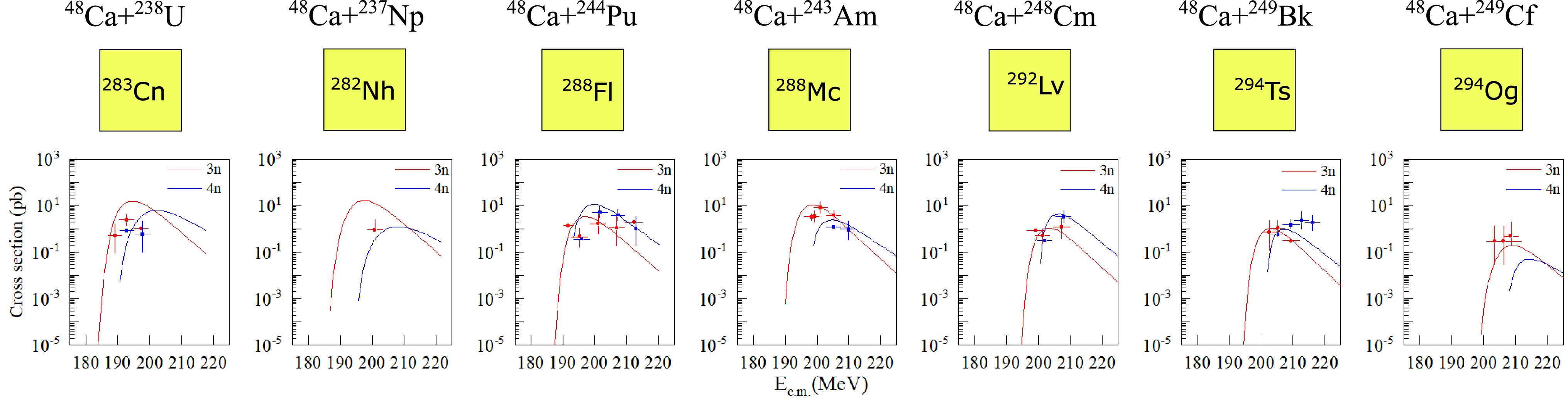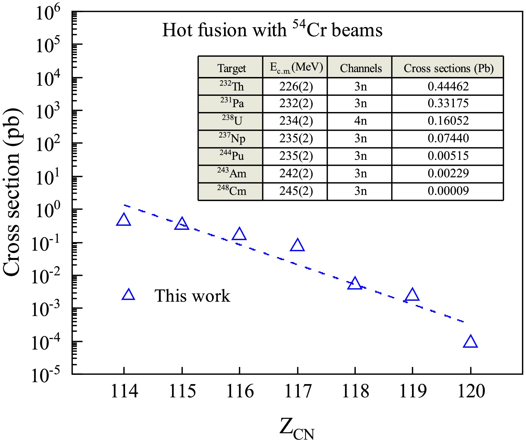 The theoretical study aims to synthesize superheavy elements with\begin{document}$ Z \geq 114 $\end{document} by irradiating an actinide target with a beam heavier than \begin{document}$^{48}\text{Ca}$\end{document} . The results of the \begin{document}$ \mathrm{^{244}Pu}(\mathrm{^{50}Ti}, \, \mathit{x} n)\, \mathrm{^{294-\mathit{x}}Lv} $\end{document} reaction are in good agreement with the experimental results first published by Lawrence Berkeley National Laboratory. The research indicates that reactions using \begin{document}$ \mathrm{^{50}Ti} $\end{document} have higher cross sections for the production of superheavy elements compared to reactions using \begin{document}$ \mathrm{^{54}Cr} $\end{document} . The production cross section for the \begin{document}$ \mathrm{^{249}Bk}(\mathrm{^{50}Ti}, \, \mathit{x} n)\, \mathrm{^{299-\mathit{x}}119} $\end{document} reaction is predicted to be \begin{document}$ \sigma_{\mathrm{prod}} = 21.72 $\end{document} fb at a center-of-target center-of-mass energy of 226(2) MeV, while for the \begin{document}$ \mathrm{^{249}Cf}(\mathrm{^{50}Ti}, \, \mathit{x} n)\, \mathrm{^{299-\mathit{x}}120} $\end{document} reaction, it is predicted to be \begin{document}$ \sigma_{\mathrm{prod}} = 1.80 $\end{document} fb at a higher center-of-target center-of-mass energy of 233(2) MeV. This suggests that with a \begin{document}$ \mathrm{^{50}Ti} $\end{document} beam, there is potential for synthesizing superheavy elements near the island of stability, as well as new elements beyond \begin{document}$ Z = 118 $\end{document} .