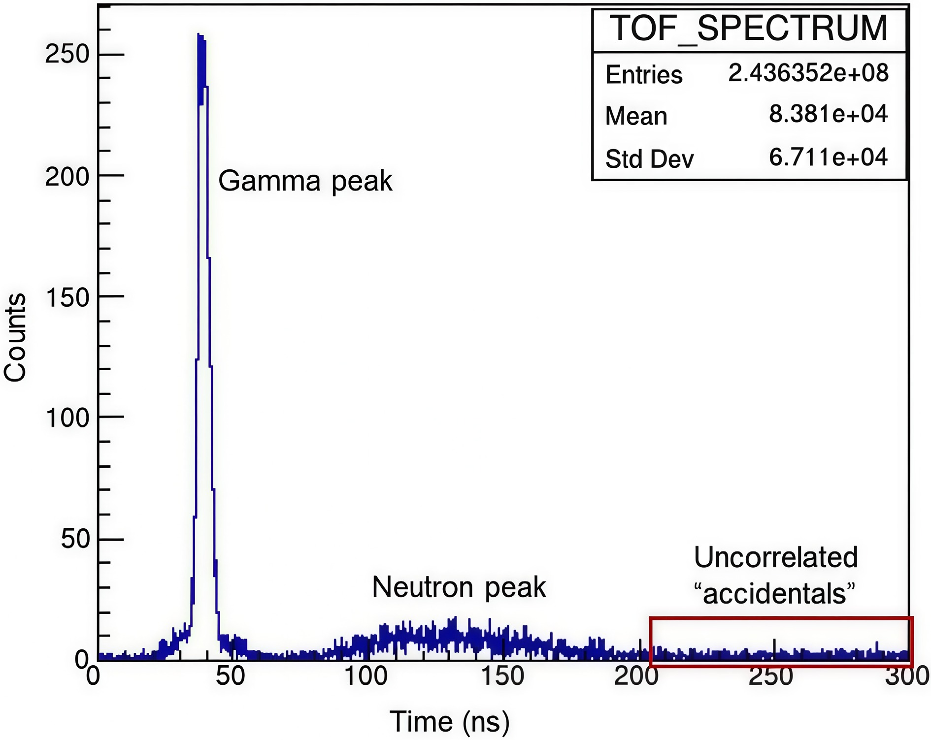 This paper presents the development and validation of China’s first benchmark measurement system for neutron leakage time-of-flight (TOF) spectra using a 252Cf spontaneous fission source and spherical polyethylene sample. EJ-309 and CLYC scintillation detectors were used for neutron detection, and a shadow cone was employed for background suppression. Notably, the SiC detector was, for the first time on this platform, applied as the start-time signal generator in TOF spectrum measurement. The TOF spectrum covering the energy range of 0.15−8.00 MeV was measured, and the results were systematically compared with evaluated data from four major nuclear libraries: ENDF/B-VIII.1, JEFF-3.3, JENDL-5, and CENDL-3.2. The comparison revealed strong agreement across the full spectrum, with calculated to experimental (C/E) deviations remaining within 5% in the high-energy region and within 13% at low energies. These results verify the system’s stability and suitability for integral experiments. The established benchmark platform provides a strong technical foundation for future neutron nuclear data validation, particularly in shielding applications and the improvement of fission-spectrum nuclear databases.