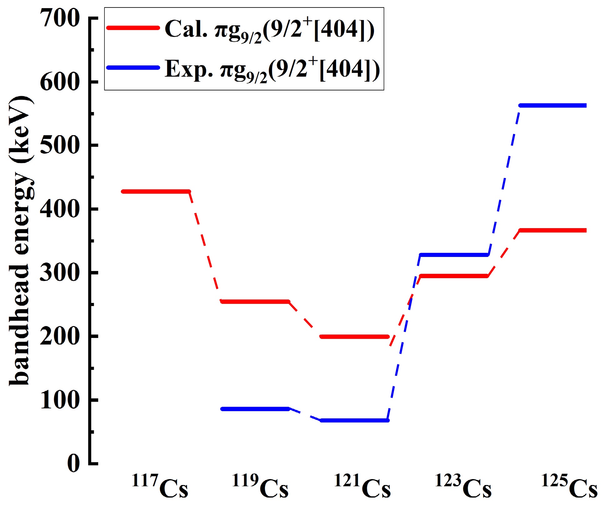 The\begin{document}$ \pi d_{5/2} $\end{document} rotational bands in odd-even nuclei 117,119,121,123,125Cs are systematically investigated using the cranked shell model (CSM) with the pairing correlations modeled with a particle number conserving (PNC) method. In this PNC method, the particle number is conserved exactly while considering the blocking effects. The experimental observations of the \begin{document}$ \pi d_{5/2} $\end{document} bands with two upbendings for 117,119Cs and one backbending for 125Cs are reproduced very well by the PNC-CSM method. Furthermore, \begin{document}$ \pi d_{5/2} $\end{document} configuration bands with two upbendings for 121Cs and one backbending for 123Cs are predicted by the PNC-CSM calculations. The difference between the lighter 117,119,121Cs and heavier 123,125Cs isotopes is caused by the evolution of single-particle orbitals near the Fermi surface, and the high-j low-Ω orbital \begin{document}$ \pi [550]1/2 $\end{document} plays an important role. The proton shell gap of lighter isotopes is at \begin{document}$ Z=50 $\end{document} , whereas it appears at \begin{document}$ Z=48 $\end{document} for heavier ones. For lighter isotopes 117,119,121Cs, the first upbending is primarily due to the off-diagonal contributions of protons \begin{document}$ j_{x}(\pi5/2^{-}[532]\pi3/2^{-}[541]) $\end{document} and \begin{document}$ j_{x}(\pi1/2^{-}[550]\pi3/2^{-}[541]) $\end{document} . The second upbending is mainly effected by the off-diagonal contributions of neutrons \begin{document}$ j_{x}(\nu7/2^{-}[523] \nu5/2^{-}[532]) $\end{document} and \begin{document}$ j_{x}(\nu3/2^{-}[541] \nu5/2^{-}[532]) $\end{document} for 117,119Cs and \begin{document}$ j_{x}(\nu1/2^{-}[541] \nu5/2^{-}[532]) $\end{document} for 121Cs, respectively. For heavier isotopes such as 123,125Cs, the backbending is attributed mainly to the diagonal parts of proton \begin{document}$ j_{x}(\pi1/2^{-}[550]) $\end{document} and neutron \begin{document}$ \nu7/2^{-}[523] $\end{document} orbital related terms of diagonal \begin{document}$ j_{x}(\nu7/2^{-}[523]) $\end{document} and off-diagonal \begin{document}$ j_{x}(\nu7/2^{-}[523] \nu5/2^{-}[532]) $\end{document} contributions.