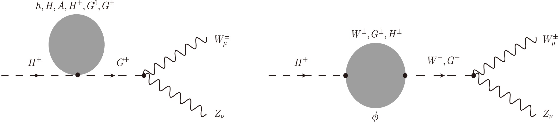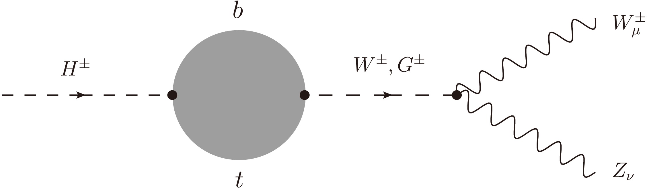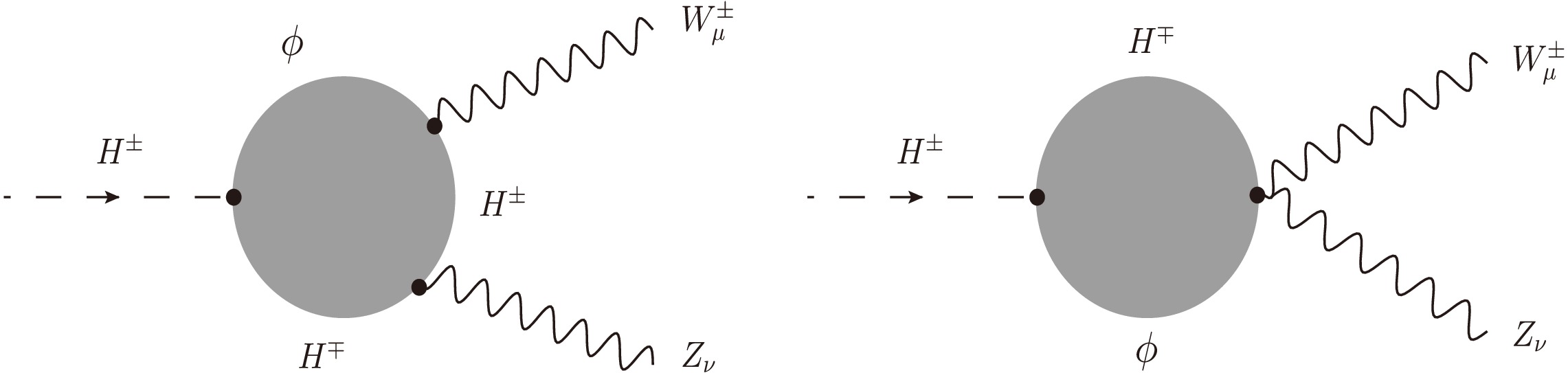 One-loop contributions for the decay process\begin{document}$ H^{\pm} \rightarrow W^{\pm}Z $\end{document} within the Two-Higgs-Doublet Model (THDM) are computed in the general \begin{document}$ {\cal{R}}_{\xi} $\end{document} gauge, and its phenomenological applications at future muon–TeV colliders are investigated. Analytic results are confirmed by several consistency tests, including those of ξ-independence, renormalization-scale stability, and the ultraviolet finiteness of the one-loop amplitude. We first perform an updated parameter scan of the Type-X THDM in phenomenological studies. The production of charged Higgs boson pairs at future muon–TeV colliders is then investigated through two processes: \begin{document}$ \mu^+\mu^- \rightarrow H^+H^- \rightarrow W^{\pm}W^{\mp}Zh $\end{document} and \begin{document}$ \mu^+\mu^- \rightarrow \gamma\gamma \rightarrow H^+H^- \rightarrow W^{\pm}W^{\mp}Zh $\end{document} . Both signal events and their significance are evaluated considering the corresponding Standard Model backgrounds. We find that the signal significances can exceed \begin{document}$ 5\sigma $\end{document} at several benchmark points in the viable parameter space of the Type-X THDM.