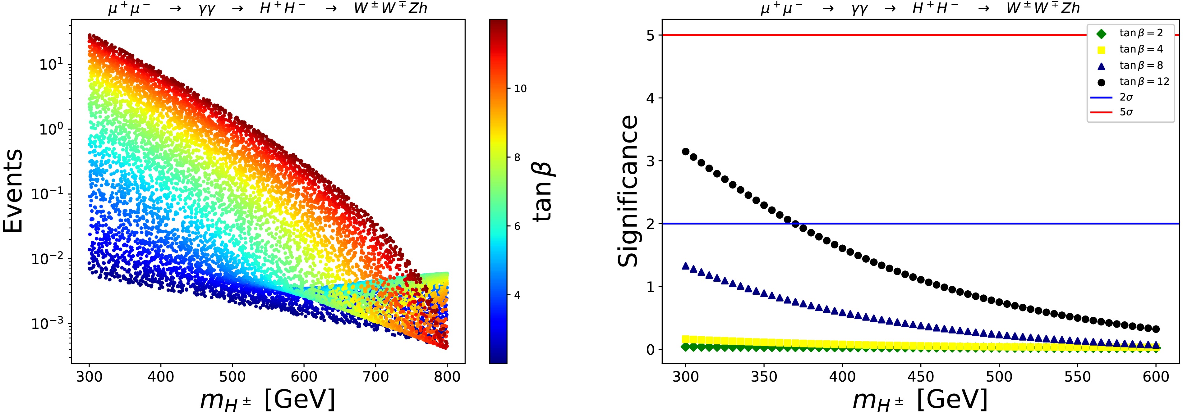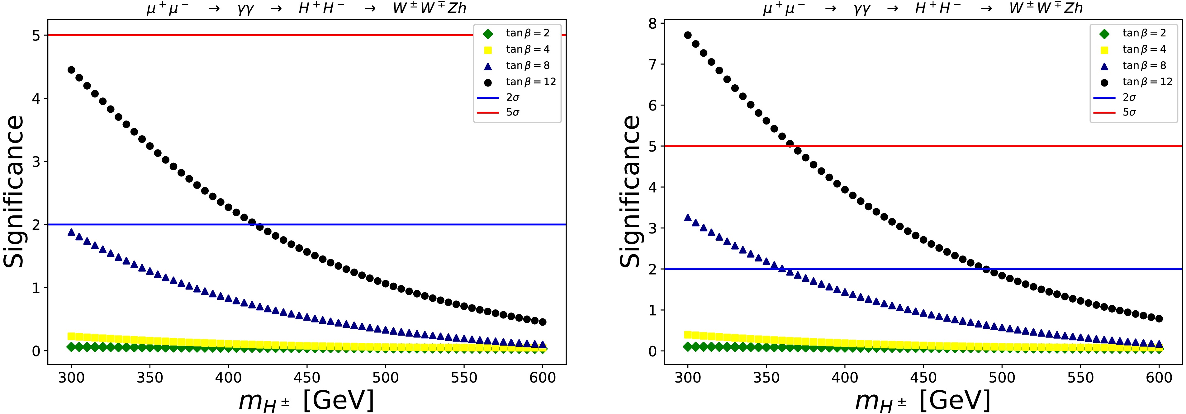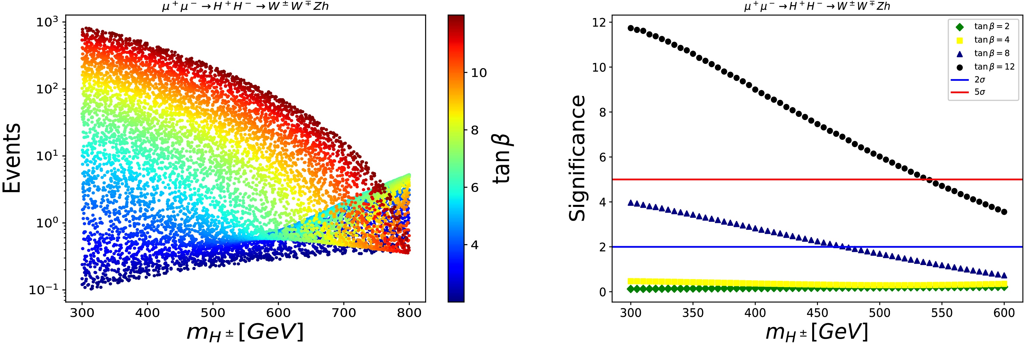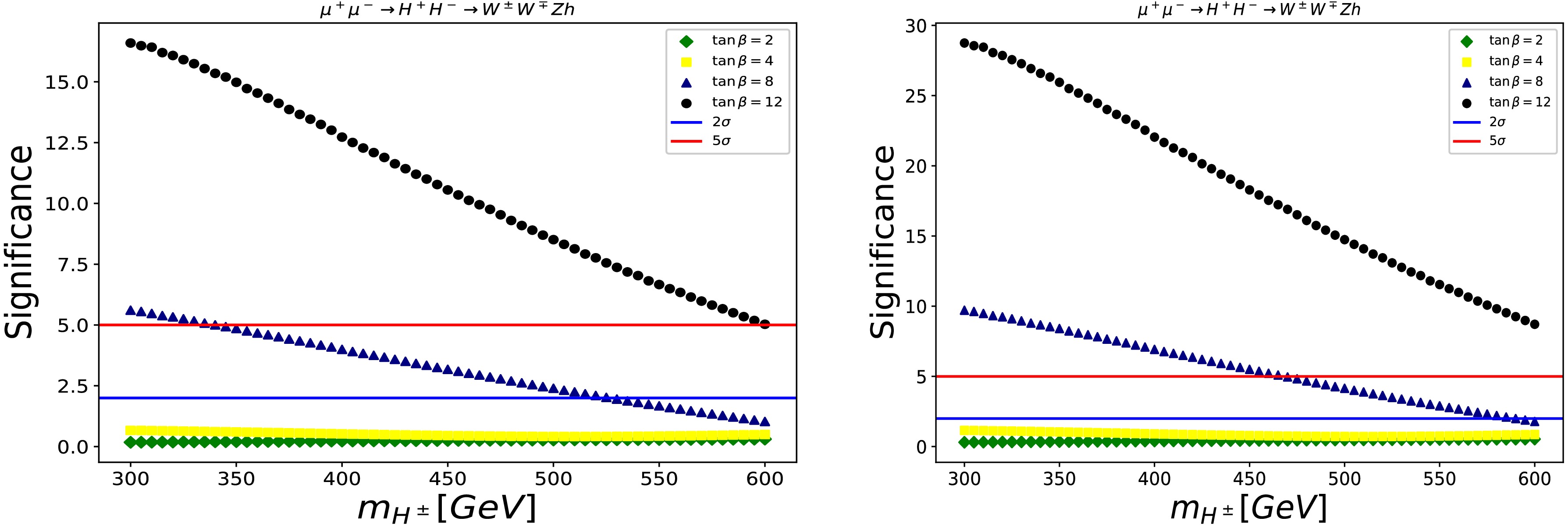 One-loop contributions for the decay process\begin{document}$ H^{\pm} \rightarrow W^{\pm}Z $\end{document} within the Two-Higgs-Doublet Model (THDM) are computed in the general \begin{document}$ {\cal{R}}_{\xi} $\end{document} gauge, and its phenomenological applications at future muon–TeV colliders are investigated. Analytic results are confirmed by several consistency tests, including those of ξ-independence, renormalization-scale stability, and the ultraviolet finiteness of the one-loop amplitude. We first perform an updated parameter scan of the Type-X THDM in phenomenological studies. The production of charged Higgs boson pairs at future muon–TeV colliders is then investigated through two processes: \begin{document}$ \mu^+\mu^- \rightarrow H^+H^- \rightarrow W^{\pm}W^{\mp}Zh $\end{document} and \begin{document}$ \mu^+\mu^- \rightarrow \gamma\gamma \rightarrow H^+H^- \rightarrow W^{\pm}W^{\mp}Zh $\end{document} . Both signal events and their significance are evaluated considering the corresponding Standard Model backgrounds. We find that the signal significances can exceed \begin{document}$ 5\sigma $\end{document} at several benchmark points in the viable parameter space of the Type-X THDM.