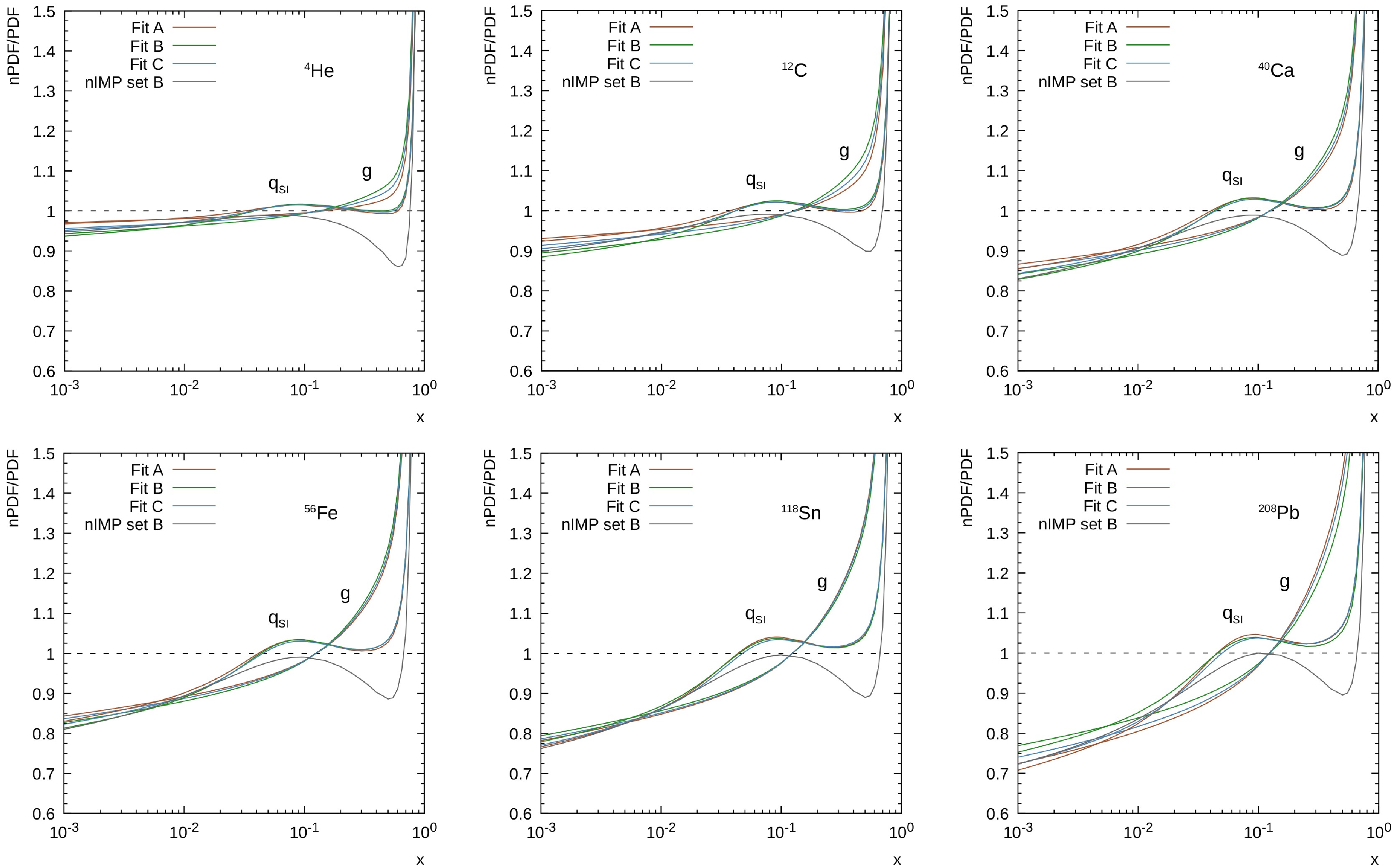 A model for the nuclear medium modification of parton densities is presented. The approach is based on a global analysis of available deep inelastic scattering data for different nuclear targets within the rescaling model, combined with the effects of Fermi motion. The scale dependence is implemented through the DGLAP-evolved quark and gluon densities in a proton derived analytically at the leading order of QCD coupling. By fitting the rescaling parameters to experimental data on the ratio\begin{document}$F_2^A(x,Q^2)/F_2^{A^\prime}(x,Q^2) $\end{document} for several nuclear targets A and A', we obtain predictions for nuclear parton distributions, even for unmeasured nuclei. The effects of nuclear modifications are investigated with respect to the mass number A. We highlight distinct shadowing and antishadowing behaviors for gluons and quarks.