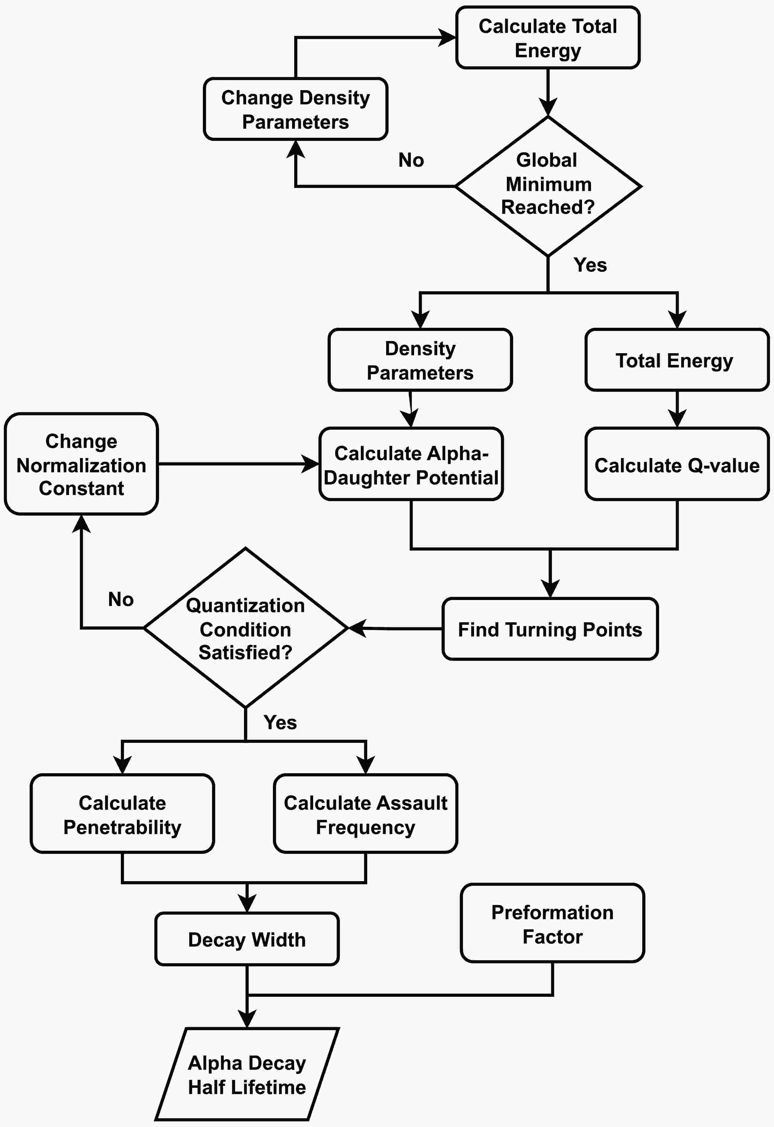 In the third stage, the Q-value, derived from the energy difference between parent and daughter nuclei, is combined with the α-daughter potential to compute α-decay associated probabilities and subsequently determine the half-life [37].