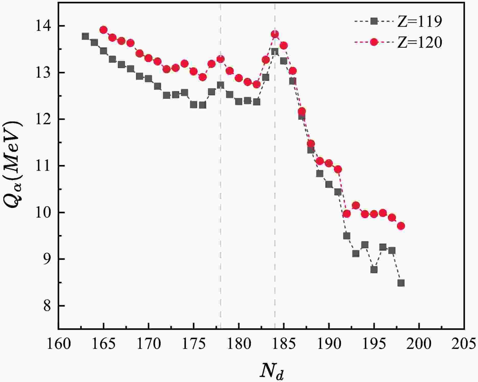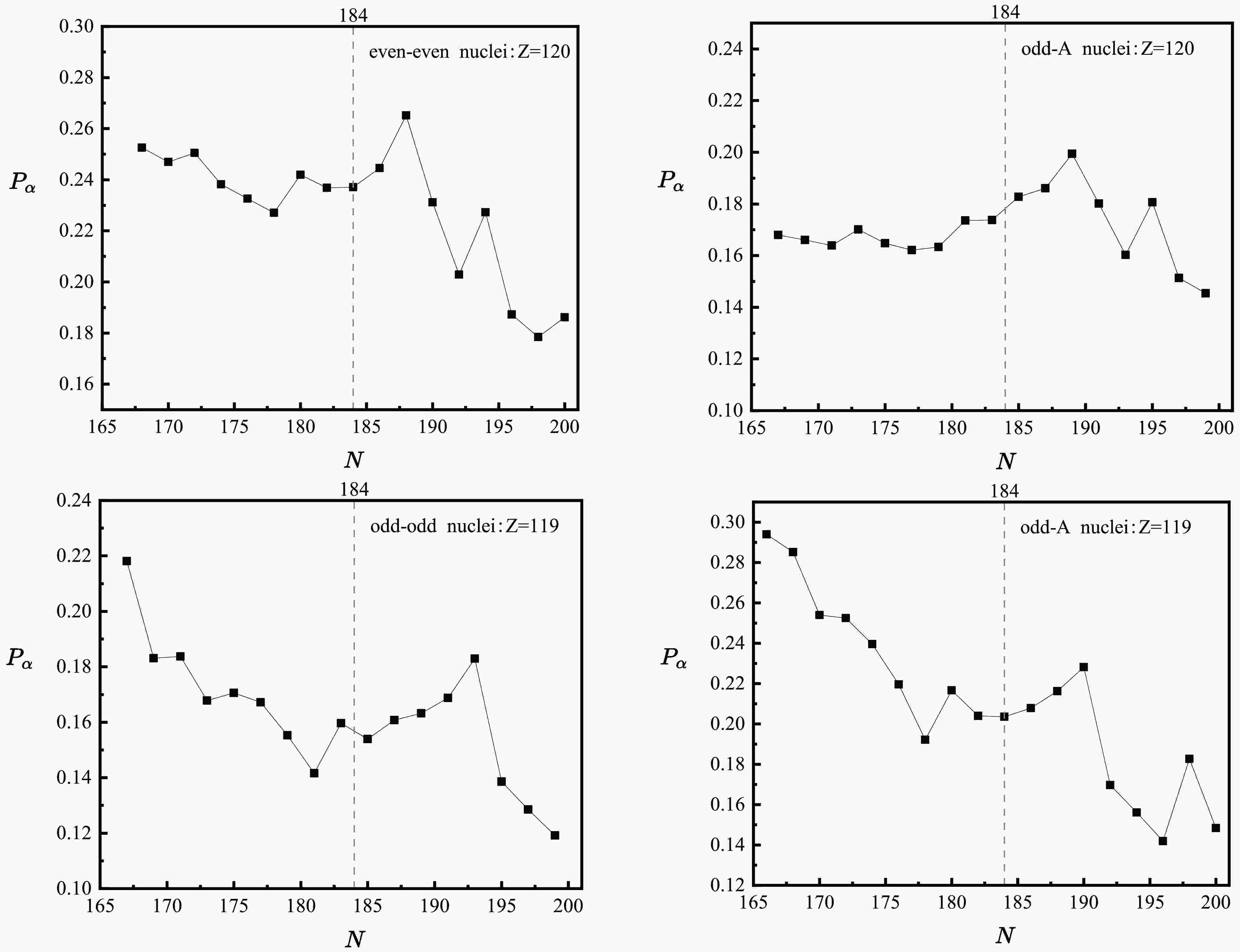$ E_\alpha $ is the kinetic energy of the emitted$ \alpha $ particle, which is related to the$ \alpha $ decay energy as follows:$ E_\alpha = \frac{A_p - 4}{A_p} Q_\alpha. $