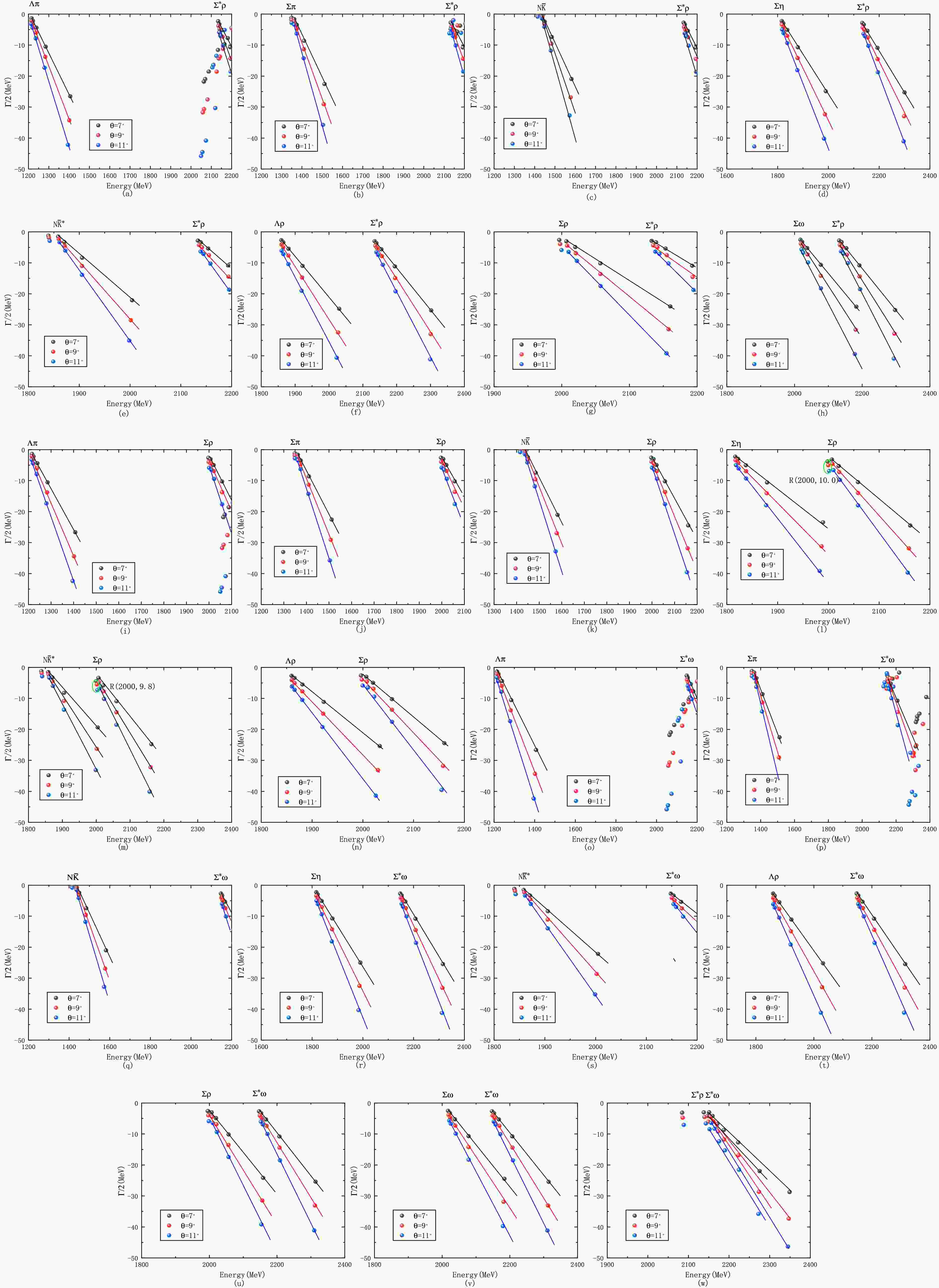 $ \Sigma(1/2^{-}) $ five-quark system. (a)$ \Sigma^{*} \rho \rightarrow \Lambda \pi $ .(b)$ \Sigma^{*} \rho \rightarrow \Sigma \pi $ . (c)$ \Sigma^{*} \rho \rightarrow N\bar{K} $ . (d)$ \Sigma^{*} \rho \rightarrow \Sigma \eta $ . (e)$ \Sigma^{*} \rho \rightarrow N\bar{K}^{*} $ . (f)$ \Sigma^{*} \rho \rightarrow \Lambda \rho $ . (g)$ \Sigma^{*} \rho \rightarrow \Sigma \rho $ . (h)$ \Sigma^{*} \rho \rightarrow \Sigma \omega $ . (i)$ \Sigma \rho \rightarrow \Lambda \pi $ . (j)$ \Sigma \rho \rightarrow \Sigma \pi $ . (k)$ \Sigma \rho \rightarrow N\bar{K} $ . (l)$ \Sigma \rho \rightarrow \Sigma \eta $ . (m)$ \Sigma \rho \rightarrow N\bar{K}^{*} $ . (n)$ \Sigma \rho \rightarrow \Lambda \rho $ . (o)$ \Sigma^{*} \omega \rightarrow \Lambda \pi $ . (p)$ \Sigma^{*} \omega \rightarrow \Sigma \pi $ . (q)$ \Sigma^{*} \omega \rightarrow N\bar{K} $ . (r)$ \Sigma^{*} \omega \rightarrow \Sigma \eta $ . (s)$ \Sigma^{*} \omega \rightarrow N\bar{K}^{*} $ . (t)$ \Sigma^{*} \omega \rightarrow \Lambda \rho $ . (u)$ \Sigma^{*} \omega \rightarrow \Sigma \rho $ . (v)$ \Sigma^{*} \omega \rightarrow \Sigma \omega $ . (w)$ \Sigma^{*} \omega \rightarrow \Sigma^{*} \rho $ . -