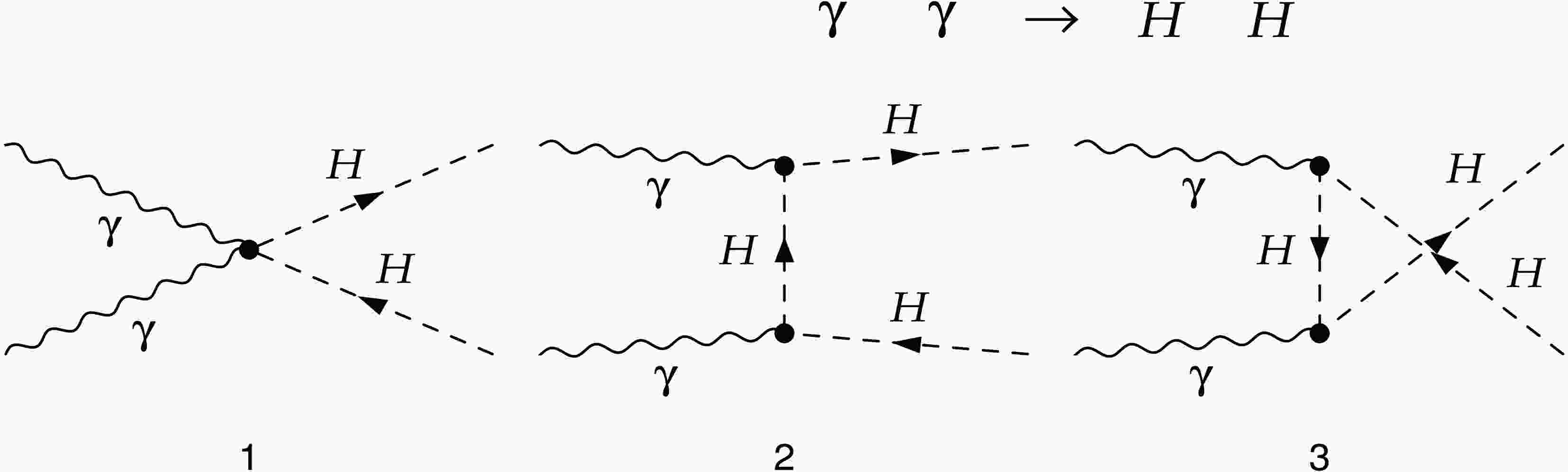 $ \mu^+\mu^- \rightarrow \gamma \gamma \rightarrow H^{+}H^{-} \rightarrow W^{\pm}W^{\mp}Zh $ . The total cross section is calculated by convoluting the partonic process$ \gamma \gamma \rightarrow H^{+}H^{-} \rightarrow W^{\pm}W^{\mp}Zh $ with the photon structure function, as follows:$ \sigma(s) = \int_{\tfrac{2m_{H^\pm}} {\sqrt{s}}}^{x_{\text{max}}} dz \, \left( 2z \int_{z^2/x_{\text{max}}}^{x_{\text{max}}} \frac{dx}{x} \, f_{\gamma/\mu}(x) \, f_{\gamma/\mu} \left(z^2/x\right) \right) \, \hat{\sigma}(\hat{s} = z^2 s). $
