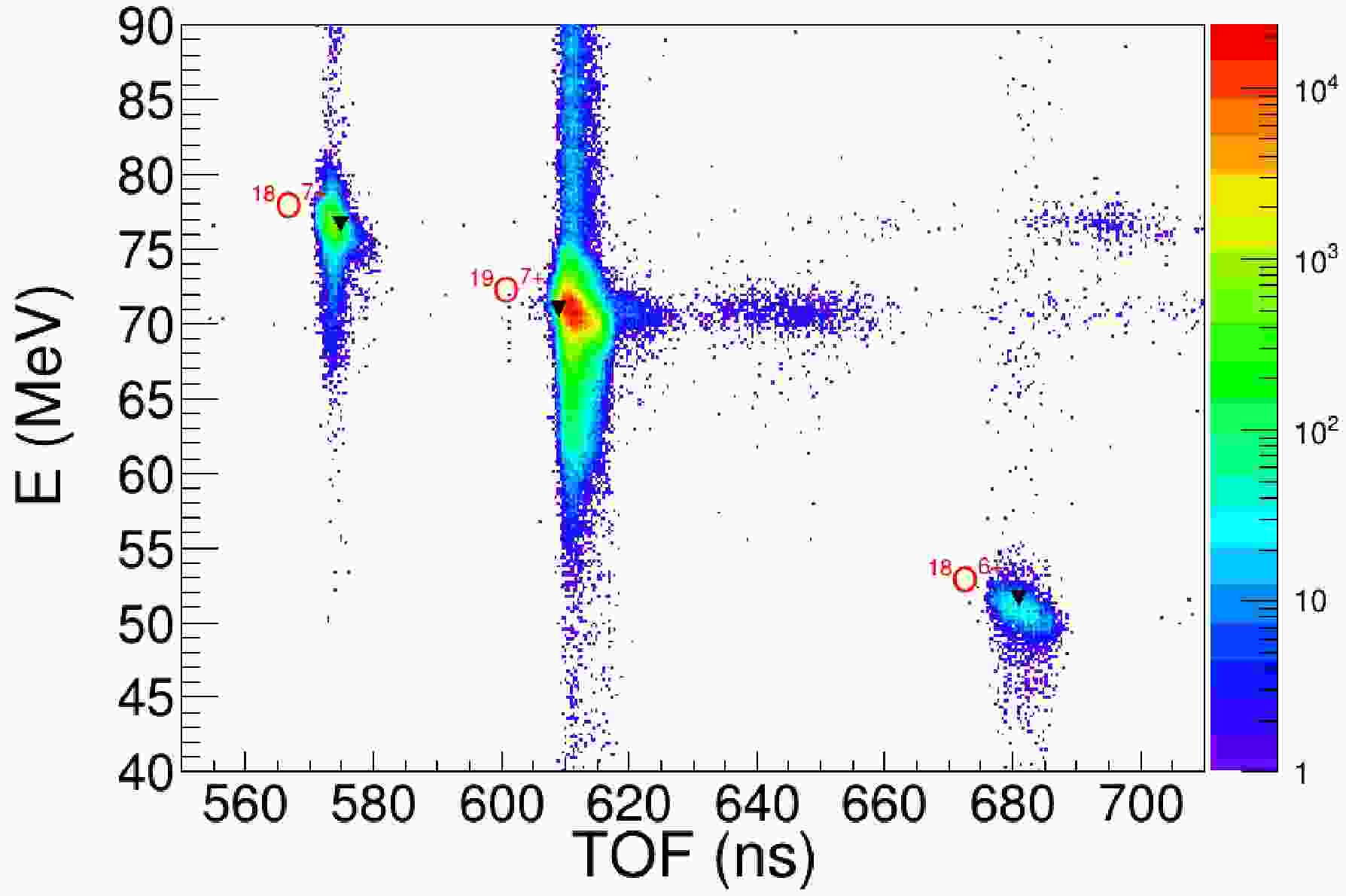 $^{19}{\rm{F}}$ , the 7+ charge state of$^{19}{\rm{O}}$ was selected.From the TOF–energy correlations obtained with the plastic detectors and the silicon detector (Fig. 2), the secondary beam intensity was determined to be