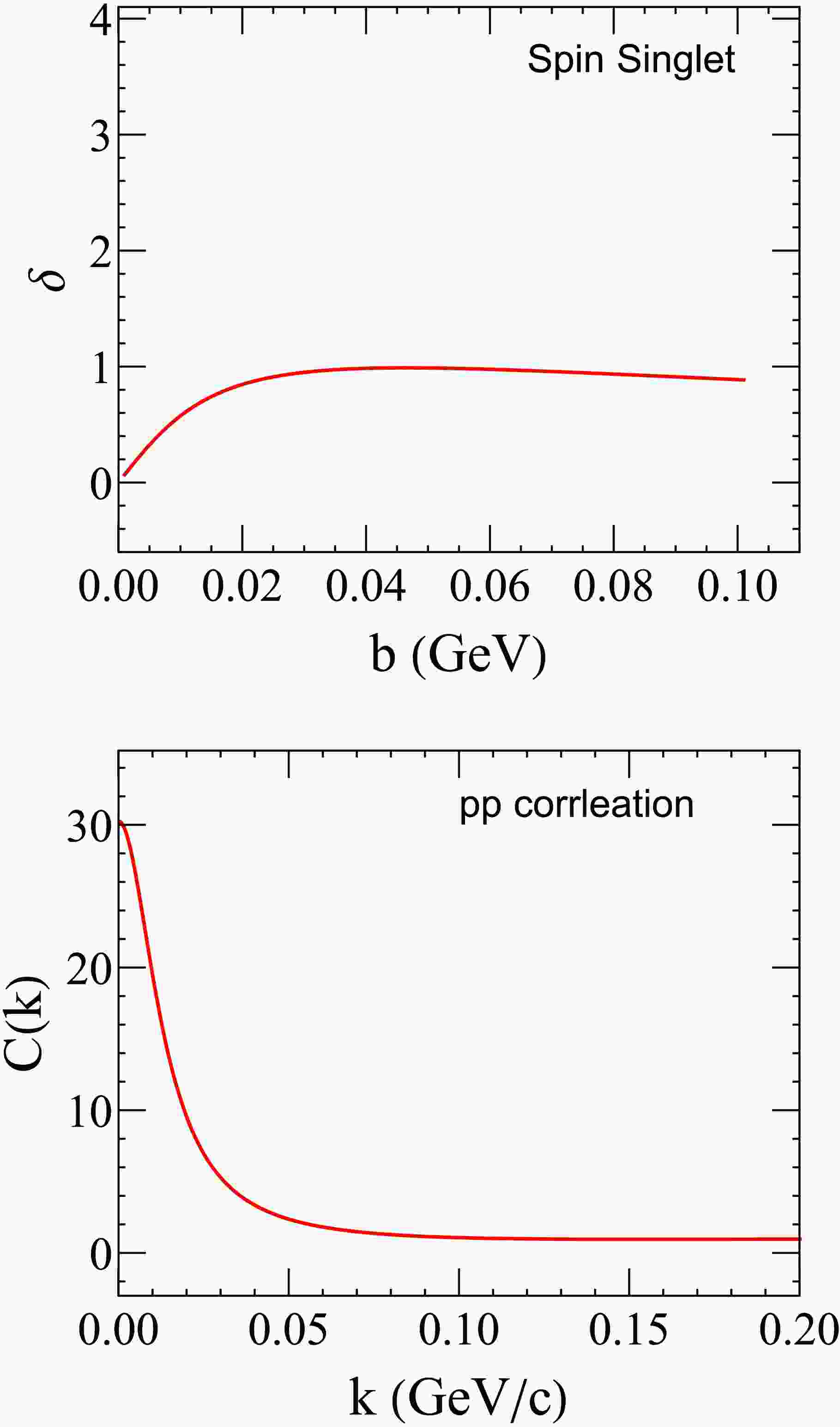 $ \delta_S $ and$ \delta_D $ , respectively. These phase shifts can be expanded at low energies to extract the scattering length$ a_0 $ and effective range$ r_{\rm{eff}} $ for both the S and D-waves. However, in low-energy scattering processes, the dominant contribution comes from the S-wave phase shift$ \delta_S $ , while the influence of the D-wave component is negligible.The correlation function can be expressed as [29, 30].
