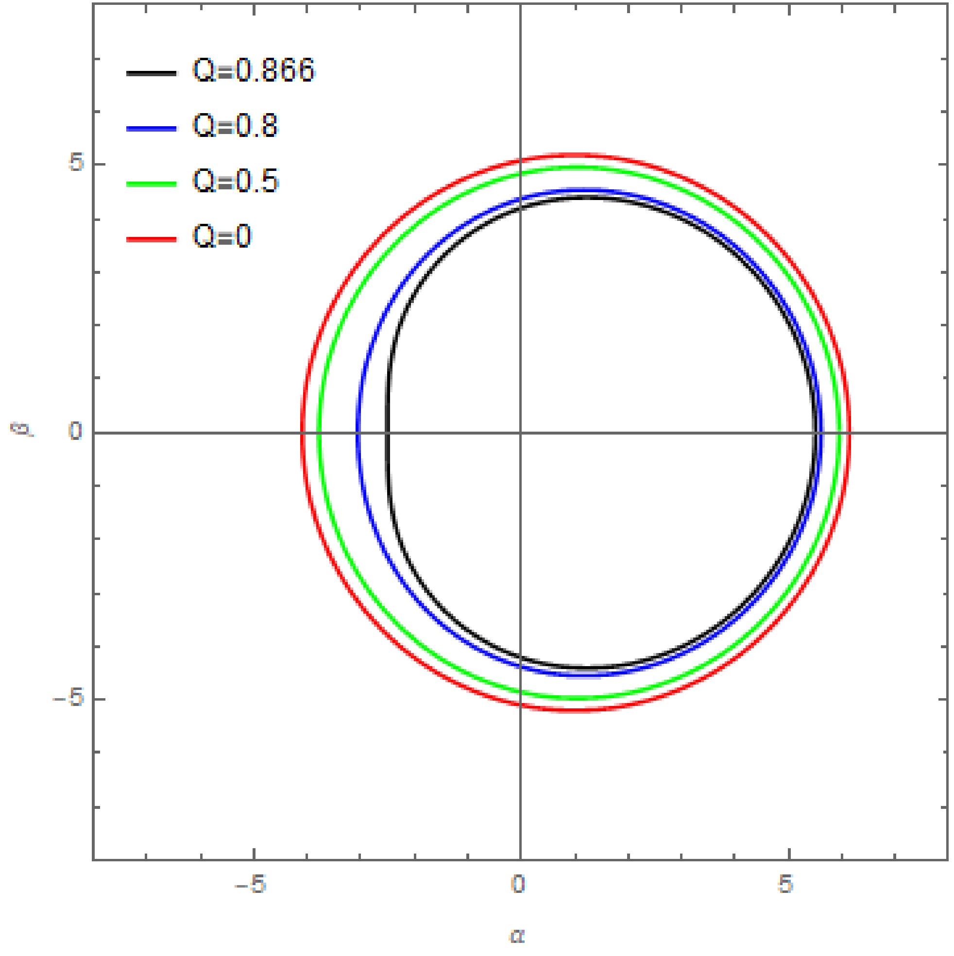 Defining $ x = \frac{1}{r-r_c} $, one can also obtain the expression (114) with a different value of c, namely $ c = 3r_c^2-\frac{a^2\eta_c}{r_c^2}-\frac{4Q^2\Delta(r_c)}{(r_c-M)^2} $. Figure 11 illustrates the solutions for critical orbits with a double root for different values of Q in the Kerr-Newman background.